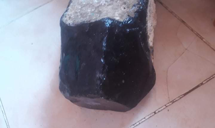 تفاجأ مواطنو ضاحية المناره بالعثور على حجر زجاجي اسود اللون ذو بريق لامع