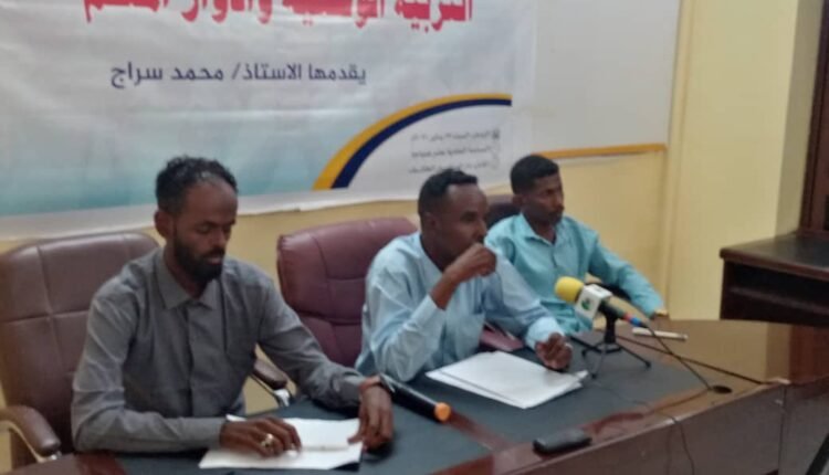 وناقشت ندوة خصصت ورقة للنقاش حول التربية الوطنية وادوار المعلم نظمتها امانة الشباب بحركة المستقبل للإصلاح والتنمية دائرة تعليم الأساس اليوم بدار الحزب بالخرطوم، وقدم الورقة الأستاذ محمد سراج تناول فيها المفاهيم التربوية واهداف التربية الوطنية وتأثيرها على المجتمع والثقافة وأدوار المعلم في التربية الوطنية، وقال محمد أن مفهوم التربية الوطنية من المفاهيم المتشعبة والواسعة في مضمونها، مشيراً الى أن هناك من ربط المفهوم التربوي بالعلوم السياسية وآخرون بقضايا إجتماعية وإقتصادية، وأكد أن المعلم له دور أساسي في تزويد التلاميذ بالفهم الإيجابي والواقعي للنظام السياسي لدولتهم التي يعيشون فيها بجانب القيم وضرورة المشاركة في القرارات السياسية المؤثرة بما يجري في بيئتهم المحلية، فضلاً عن غرس حب العمل في نفوس الأجيال الناشئة ومفهوم التعاون والتفاهم بين المواطنين، وقال أن مفهوم التربية الوطنية ليس بالضرورة أن تكون في المنهج وإنما اللاعب الأساسي فيها هو المعلم الذي يستطيع أن يرفع مستوى الوعي الفكري والمعرفي لدى الطلاب عن وطنهم من خلال المادة التي يتم تدريسها، أو عبر النشاط غير الصفي، وقال إذا أردنا أن نخدم المواطنة عبر المقررات الدراسية يجب أن تكون عناصر تنمية روح المواطنة والإنتماء الوطني مبثوثة في المقررات الداراسية ولا يخصص لها مادة واحدة، وطالب من الضروري صناعة محيط دراسي واسع تزرع وتترعرع فيه مفاهيم المواطنة بأبعادها المختلفة لتكون أساساً وسلوكاً كامناً في مكونات النشئ ولديه دور يقوم به. وطالب المعلم الإهتمام بتطوير اربعة جوانب تعزز الإنتماء الوطني لدى الطالب.
