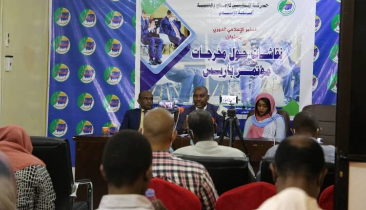 أقامت حركة المستقبل للإصلاح والتنمية مؤتمر صحفي بمقر الحركة بالخرطوم لمناقشة مخرجات مؤتمر باريس بحضور عدد من قيادات الحركة وممثلي الكيانات السياسية وأهل الإعلام.