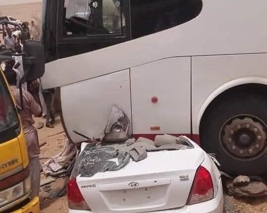 إرتطام (أفانتي) ببص سفري يسفر عن مصرع شخصين بطريق شريان الشمال قبالة القولد