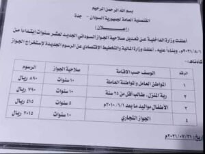 السيد رئيس مجلس الوزراء ، هل بلغك أن سعر استخراج الجواز السوداني للسودانيين في قطر للعمال والموظفين ( عشر سنوات ) بلغ مائتي دولار ( 200 $ ) مما نعُد ؟! ، أي ما يعادل ( 88.600 ) جنيه سوداني ( فقط ثمانية وثمانون الفا وستمائة جنيه سوداني ) .. يا للهول !!! ونصف هذا السعر بالدولار والجنيه السوداني لجوازات الاطفال ( خمس سنوات ) ، بينما في السعودية فالأمر جلل وأدهى وأمر ، فسعر الجواز ( عشر سنوات ) بلغ ( 890 ) ريال أي ما يعادل ( 106.800 ) جنيه سوداني ( فقط ماىة وستة آلاف وثمانمائة جنيه سوداني لاغير ) .. ياااااا للهول .. ، ربة المنزل ، طالب أقل من 25 سنة ( عشر سنوات ) فقد بلغ ( 790 ) ريالا سعودياً أي ظا يعادل بسعر صرف الريال بالسوداني ( 94.800 ) جنيه ( فقط اربعة وتسعون الفاً وثمانمائة جنيه سوداني لاغير ) يا للهول .. يا للهول .. ، الأطفال مواليد ما بعد تاريخ الاول من يناير 2020م ( خمس سنوات ) فقد بلغ ( 415 ) ريالاً سعودياً اي ما يعادل ( 49.800 ) جنيه سوداني ( فقط تسعة وأربعون الف جنيها سودانيا لاغير ) .. بينما سعر الجواز التجاري ( 2015 ) ريال سعودي … اي ما يعادل ( 241.800 ) جنيه سوداني .. وقس على ذلك في بقية ارض الله التي ينتشر فيها السودانيون …