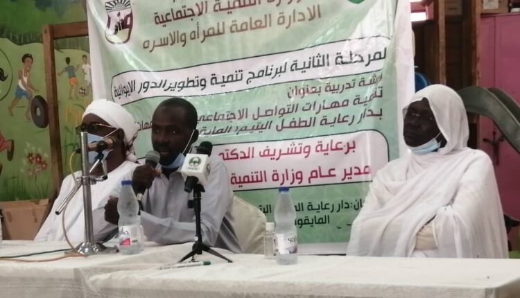 من جانبه أوضح عارف خليل محمد مدير الشئون الإدارية بالوزارة إن برنامج تطوير الدور سيستمر لمدة شهر مستهدفا ( 100 ) أم بديلة بدار المايقوما بدورات تدريبية في مجال التواصل الفعال بالإضافة للباحثيين الإجتماعيين والنفسيين العاملين بالمايقوما وإن فكرة البرنامج نبعت من تلمس الحوجة الماسة للأمهات البديلات العاملات بالمايقوما لمثل هذه البرامج بما يحقق أهداف الوزارة.