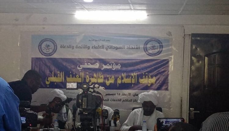 أكد الاتحاد السوداني للعلماء والائمة والدعاة السودانين وعدد من القيادات الأهلية ان التعامل مع قضية العنف والتعصب القبلي من اهم القضايا والمشاكل والتحديات التي يواجههها السودان في وسطه وأطرافه من فوضى السلاح كواحدة من الأسباب الرئيسية لاندلاع العنف والتفلتات الأمنية في السودان كما اعتبره من أكبر أخطأ السلطة المركزية بجانب حزمة من المشكلات التي تتطلب خطوات جادة وعاجلة لإيقاف العنف القبلي في جميع أنحاء البلادوعقد الاتحاد مؤتمر صحفي بمركز الحاكم بالتعاون مع المبادرة الشعبية لدعم السلام ومناهضة النزاعات القبلية بهذا الخصوص تحدث فيه حسن عوض كشكش بجانب أمير الرزيقات حامد ماهل وأمير دار زغاوة آدم حامد وعدد من الأمراء القبائل في غرب البلادوطالب الاتحاد الحكومة السودانية والتي تتحمل كامل المسؤلية العمل على الإرادة الجازمة والقدرة التامة فضلا عن إصدار قرارات حاسمة لاخماد النيران وتجنب الفتن مشيرين خصوم يتربصون بأمن واستقرار البلاد والعباد واحاكة الفتن كما طالبوا بإنشاء معهد اكاديمي لأعداد وتأهيل وتطوير المصلحين والحكماء من قيادات الاداره الأهلية وانشاء جهاز قضائي مستقل لمباشرة قضايا العنف والحكم فيها وفقآ للعدالة وشدد الاتحاد على ضرورة الصلح كقيمة دينية واخلاقية بجانب احتواء المشاكل بعيدا عن الارتباطات الشخصية بين الجناة والعصبية القبلية.