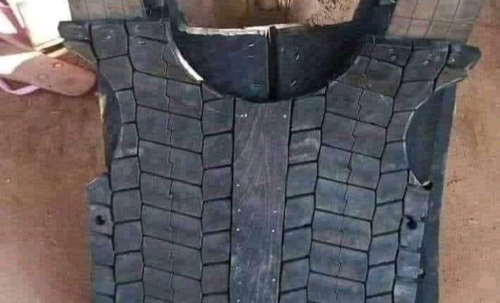 بعد الإصابات المتكررة في المواكب التي أنتظمت محلية أمدرمان، أقدم شاب يقيم بضاحية أم بدة على صنع درع واقي من الرصاص المطاطي، وتعد صناعة وطنية خالصة من إطارات السيارات