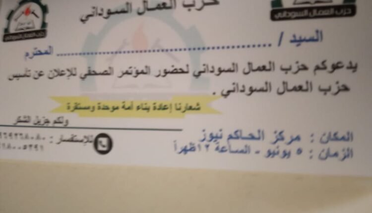 حزب العمال السودانى يعقد مؤتمرا صحفيا للاعلان عن تاسيس الحزب واعلان ضربة البداية بالعاصمة والولايات تحت شعار اعادة بناء امة موحدة ومستقرة