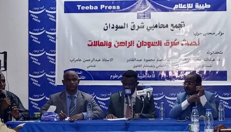 المحامي عبد الرحمن عامراب في المؤتمر الصحفي لتجمع محامي شرق السودان، بطيبة برس اليوم، ان الهدف من قيام المؤتمر لتوضيح طبيعة الجرائم ضد مواطني الولاية، متهما حكومة ولاية البحر الأحمر بأنها تتهاون في حماية المواطنين، وعن اى فعل تجاه تهجير مواطنين من منازلهم وأضاف أن عدد المنازل بلغ 3582منزل بورتسودان .