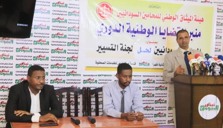 طالبت الأجسام الثلاثة متمثلة فى هئية الميثاق الوطنى للمحاميين،السودانيين ،والمحاميين بلاحدود والمستقليين بحل اللجنة التيسرية الحالية واعلنوا خلال مؤتمر صحفى بنبض السودان امس اتفاقهم لمناهضة اللجنة وقالوا بانها أصبحت بلا شرعية وتم تسيسها وانتماءها لجهات حزبية إضافة لعدم قيامها بخدمة قضايا المحامين وتجاوزت مدتها ثلاثة أشهر لتمتد الى سنوات منذ تعينها عبر إزالة التمكين ، فيما قال المحامى عبد العظيم سليم عضو هئية الميثاق الوطنى للمحاميين السودانيين نحتاج لنقابة تاتى بمفهوم المحامين دون اقصاء وتخويف وتخوين ومطلوب منها الوقفة الجادة لحل جميع قضايا المحامين عبر نقابة حرة لاعلاقة لها بالسياسة وكشف بأن سجل المحامين يتجاوز ٤٥ الف محامى فى حوجة لجسم جامع يملثهم دون انتماء إلى احزاب وكل من لديه حزب ان يذهب بعيدا عنها
