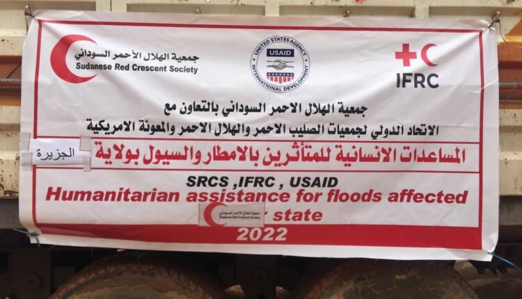ارسلت جمعية الهلال الاحمر السوداني صباح اليوم مساعدات انسانية اللمتاثرين من الامطار والسيول بولايتي نهر النيل والجزيرة وذلك بدعم من المعونة الامريكية و الاتحاد الدولي لجمعيات الصليب الاحمر والهلال الاحمر وقد صرحت الامين العام للجمعية الدكتورة عفاف احمد يحيي ان المساعدات لعدد الف اسرة بمحلية بربر بولاية نهر النيل وخمسمائة اسرة بمحلية االمناقل بولاية الجزيرة وتشتمل المساعدات علي مواد الايواء مشمعات , ناموسيات , بطانيات , حاويات مياه , فرشات ارضية , اطقم نظافة شخصية واطقم اواني طبخ . مؤكدة ان هذه دفعة اولي وستقوم الجمعية بالتدخل في مجال المياه والاصحاح فضلا عن الجانب الطبي