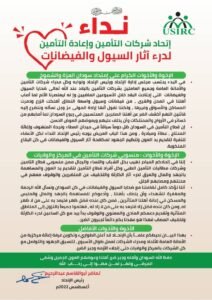 إننا في إتحادكم المبادر نهيب بكل الشباب والنساء والرجال ممن منسوبي قطاع التامين وشركات مطالبات التأمين الطبي وكل أفراد قطاع التأمين لتقديم يد العون والمساهمة بالجهد والمال والعرق لدرء آثار الكارثة والتخفيف عن المتضررين والوقوف معهم في محنتهم ومصابهم الجلل.