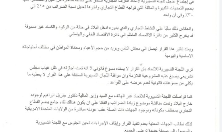 تسييرية إتحاد الغرف التجارية تطالب بوقف قرار زيادة الضرائب