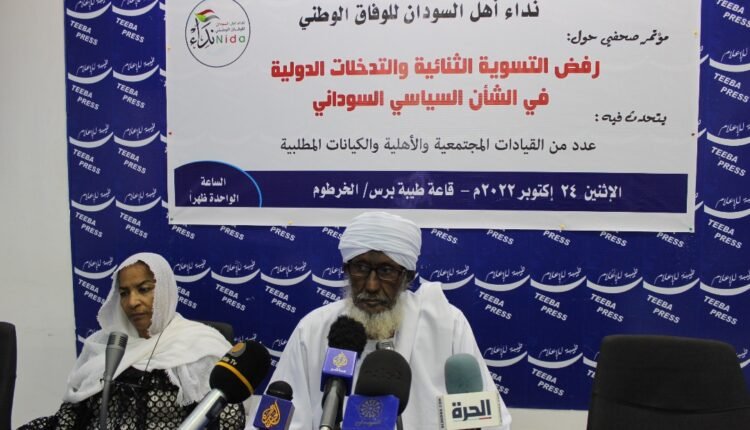 رفض الاستاذ محمد عبدالله كوكو  ممثل الوسط التسوية التي طرحت مؤخر بالساحة السياسية    قائلا ان  قحت لا تمثل الاحزاب مستنكرا    التدخل الأجنبي في الشأن الداخلي مفسرا بانه زاد الموقف تعقيدا وان من يلجاؤن للسفارات الاجنية هم مهزومين مطالبا الحد من حركتها  لأنها تتمتع بحرية تامة وقال إن المسارات يجب تعدل لانها لم تمثل تمثيل صحيح لأن من قام بها قد مثل نفسه فقط  مطالبا بطرد رئيس البعثة الاممية جاء في مؤتمرها مهدد بانهم سيلجاءون إلى طريق اخر ب  قطع الطريق بين الولايات والخرطوم  الصحفي بطيبة برس تحت عنوان رفض التسوية الثنائية والتدخلات الدولية  في الشأن السياسي السوداني  تحدث فيها عدد من القيادات المجتمعية والكيانات المطلبية لنداء اهل السودان الوفاق الوطني.