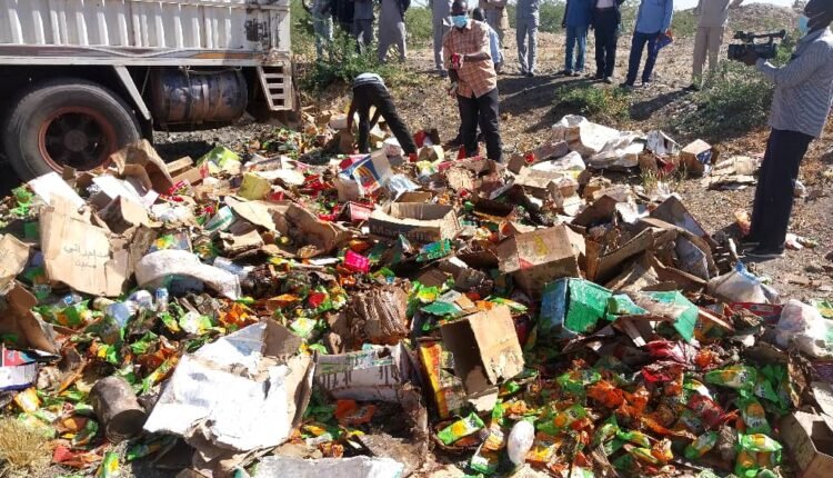 ابادت الهيئةالسودانية للمواصفات والمقاييس فرع ولاية النيل الأبيض صباح اليوم بمكب نفايات مدينة كوستي اكثر من واحد وعشرين طن من المواد الغذائية المنتهية الصلاحية وغير مطابقة للمواصفات تقدر قيمتها بأكثر من ثمانين مليون جنيه تم ضبطتها من خلال العمل الروتيني لاتيام التفتيش علي الاسواق والمحال التجارية بمحليات الولاية المختلفة.