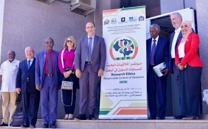 نظمت عمادة البحث العلمي بجامعة السودان للعلوم والتكنولوجيا مؤتمر أخلاقيات البحث العلمي- السلوك المسؤول في البحث في الفترة من ١٤-١٥فبراير ٢٠٢٣م تحت رعاية وزير التعليم العالي والبحث العلمي ،بالتعاون مع كرسي اليونسكو للمرأة والعلوم والتكنولوجيا ، ومعهد العلوم الصحية والبحث العلمي بالولايات المتحدة الأمريكية وبرنامج أخلاقيات البحث العلمي بالاردن (RCR) ..بحضور البروفيسور عبد القادر محمد حسن نور الدين مدير إدارة التعليم الأهلي والأجنبي بوزارة التعليم العالي والبحث العلمي ممثل وزير التعليم العالي والبحث العلمي والبروفيسور شمبول عدلان رئيس مجلس جامعة السودان للعلوم والتكنولوجيا والبروفيسور عيسى بشير محمد مدير جامعة السودان والبروفيسور عبد العظيم سليمان المهل نائب مدير الجامعة والبروفيسور عوض الله طيفور وكيل الجامعة والبروفيسور أيمن بدري مدير مكتب اليونسكو بالخرطوم ، والبروفيسور حمودي أحمد سعيد مدير جامعة قاردن سيتي ومدير جامعة السلام وممثل إدارة ألادلة الجنائية و منسق إتصال مكتب مدير جامعة غرب كردفان وعمداء البحث العلمي بالجامعات المختلفة ،وعدد من عمداء كليات الجامعة ،ومديري الإدارات ،وجمع غفير من العلماء والباحثين من داخل وخارج السودان.