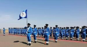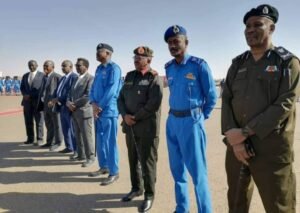 بمطار الابيّض في برنامج متكامل بمشاركة كافة القوات النظامية بالولاية ممثلة في قوات الشرطة والامن والقوات المسلحة وقوات الدعم السريع مع استعراض متكامل للسلاح وتحية الشرطة.
