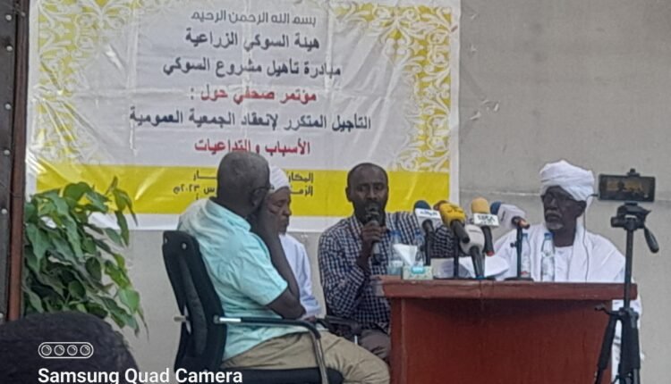 وسرد هاشم اسباب وتداعيات التأجيل المتكرر والتدخلات غير المقبولة من قبل لجنة أمن محلية سنار والقرارات المضاربة حول إقامة الجمعية العمومية، معلناً امتلاكهم معلومات بوقوف قيادي فى حزب المؤتمر الوطني المحلول بتمويل عمليات تشييد جماهيري وممارسة أساليب فاسدة من خلال عمليات الترهيب والتخويف منعاً لقيام أي جمعية عمومية تقود لانتخابات شرعية وممارسة ديمقراطية.