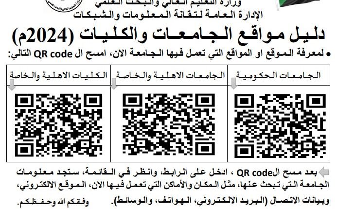 من جانبه أفاد المهندس الدكتور بابكر حسين أحمد المدير العام للإدارة العامة لتقانة المعلومات والشبكات، بأن دليل مواقع الجامعات والكليات للعام 2024م يحوي معلومات عن الجامعات الحكومية والأهلية والخاصة، مبيناً أن استخدامه يتم بعملية مسح ال QR code، الذي يدخل المستخدم على الرابط الذي يحوي ملف المؤسسة التي يبحث عن معلومات لها، موضحاً بأن طالبي الخدمة مجرد دخولهم للموقع الإلكتروني سيجدون كافة بيانات الاتصال مثل (البريد الإلكتروني، الهواتف، والوسائط) للمؤسسة التي يقصدونها، مؤكداً بأن الدليل يتم تحديثه يومياً بالمعلومات الجديدة لمواقع الجامعات والكليات.