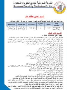 • الشركة السودانية لتوزيع الكهرباء _ إعلان عطاء