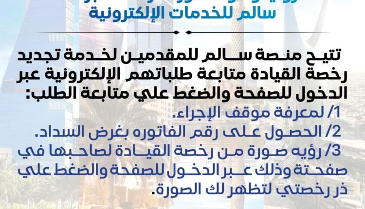 منصة سالم تُتيح خدمة متابعة طلب تجديد رخصة القيادة إليكترونيا”