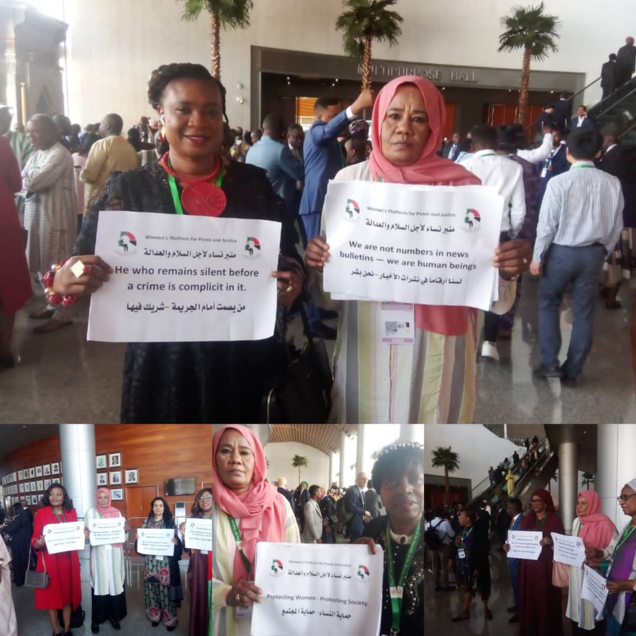 ​كما شدد المنبر في خطابه للقادة على أهمية تكثيف الحماية الإنسانية الشاملة عبر تقديم الدعم النفسي واللوجستي العاجل لآلاف النازحات اللواتي يعشن في ظروف قاسية. وطالب النداء بتمكين الصوت النسوي السوداني وفتح آفاق المشاركة الحقيقية له في المنابر الأفريقية، لتكون المرأة هي الشاهدة الصادقة والصوت الجهور في عمليات صناعة السلام، مشيراً إلى أن تغييب هذا الصوت يضعف من فرص الوصول إلى حلول مستدامة وشاملة للأزمة الراهنة.