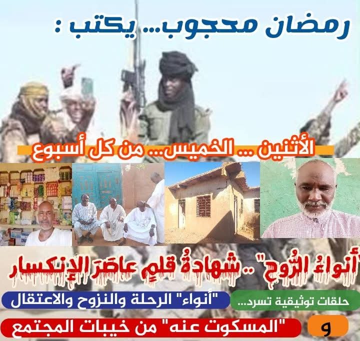 ■ عندما حان المغرب، بقينا ثلاثة فقط من أصل ستة عشر؛ أنا وصديقي محمد، والثالث كان تاجراً من أبناء دارفور، قذفت به أتون الحرب اللعينة هناك ليهرب بجلده وتجارته نحو الخرطوم طلباً للأمن، فاستأجر منزلاً بالصفوة وافتتح بقالة ليعيش من عرق جبينه وكده اليومي، لكنه وجد مصيراً أسوأ مما هرب منه، حيث اعتُقل لمجرد جلوسه أمام دكانه، ليواجه تهمة التخابر التي لا تفرق بين نازح وصحفي ومحارب قديم في شرع الغاب..