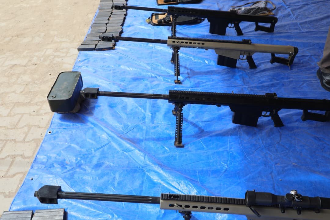 وفي تصريح *لإعلام قوات الجمارك*، أفاد العميد شرطة (حقوقي) جاد الكريم أحمد الفضل مدير مكافحة التهريب البحر الأحمر بأنه تم ضبط (34) بندقية من نوع كلاشنكوف متطوره كاتم صوت و(11) طبنجة، و(5) بنادق قناصة مدى مؤثر تسعة كيلو إلى جانب كميات كبيرة من الذخائر، كما تم ضبط عدد (2) عربة وموتر، وإلقاء القبض على متهمين اثنين أجنبيين الجنسية، واتخاذ الإجراءات القانونية اللازمة في مواجهتهما.